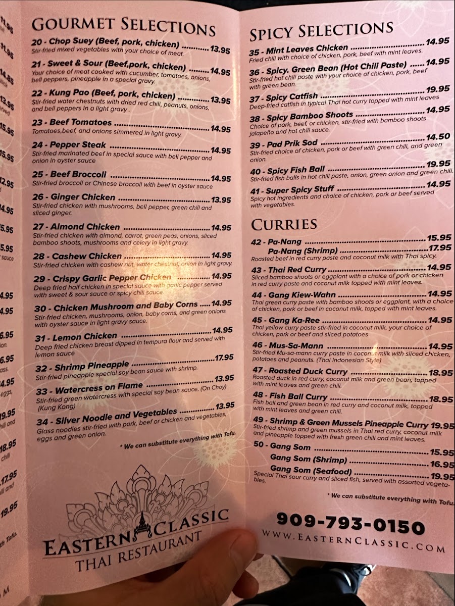 The menu is structured to provide an assortment of appetizers, mains, and accompaniments suitable for lunch or dinner. The range of dishes supports conventional Thai dining preferences, allowing guests to customize their meal with various savory, spicy, and mild flavors. Visitors typically use the menu for casual sit-down dining with an emphasis on traditional Thai cuisine.